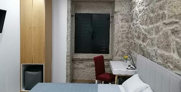 Este quarto duplo, tem vista para a rua. Ideal para um casal.
